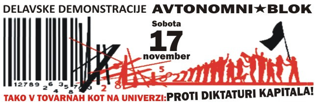 V soboto, sedemnajstega novembra, se bomo zbrali ob devetih pred moderno galerijo in solidarno podprli vse delavce in nedelavce ter jih pozvali k samoorganiziranemu uporu, temelječemu na svobodi in enakosti.