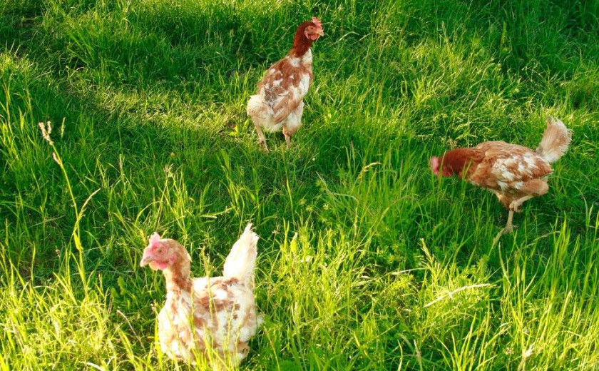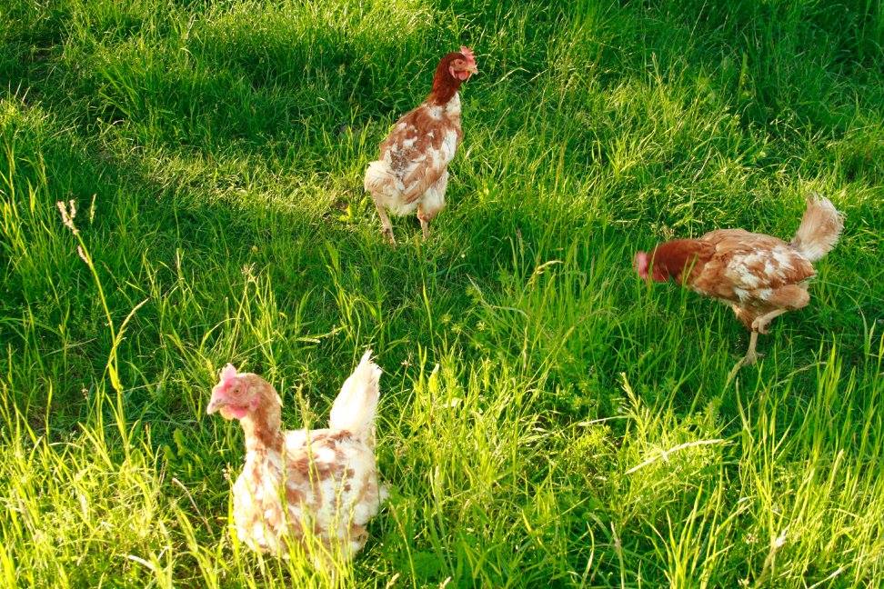 - stalni dnevni dostop do izpustov; v primeru, da si eko kokoš moraš tretjino življenja preživeti na travnih površinah, kjer moraš imeti na voljo 4 m2 zunanjega pašnika