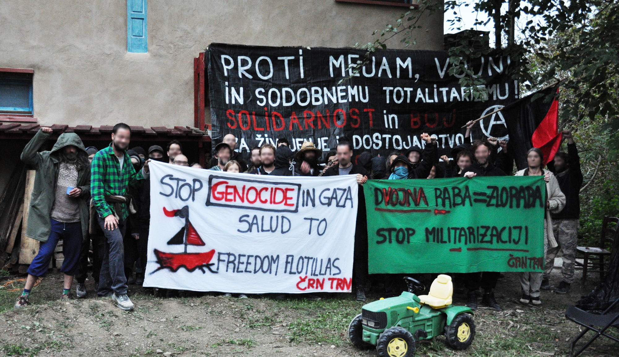Zato smo solidarni z vsemi, ki nasprotujejo pogojem vojne in se borijo proti zatiranju. Solidarni smo s Palestinci, z vsemi dezerterji v rusko-ukrajinski vojni ter s tistimi, ki skušajo prebiti obleganje Gaze.