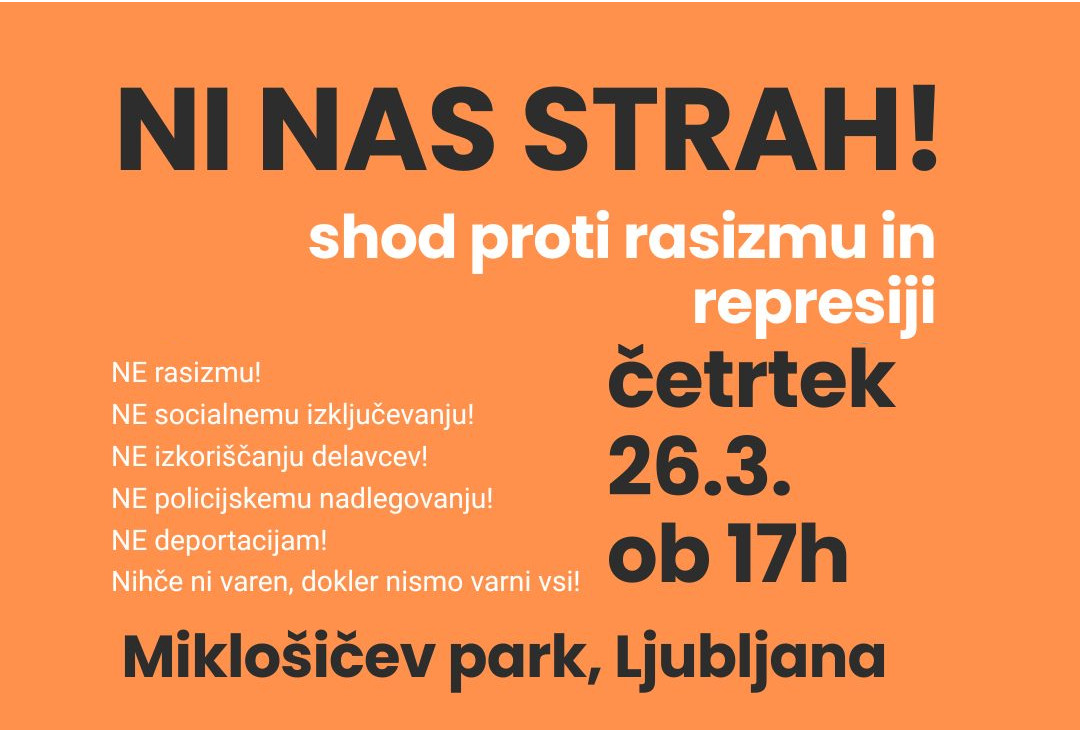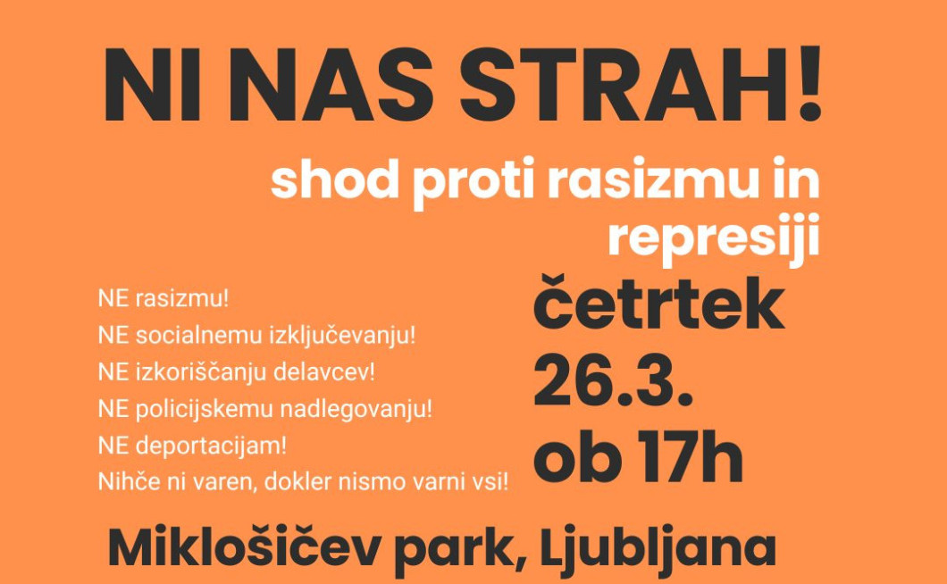 NI NAS STRAH! - SHOD PROTI RASIZMU IN REPRESIJI - 26.3. ob 17h - Miklošičev park, Ljubljana