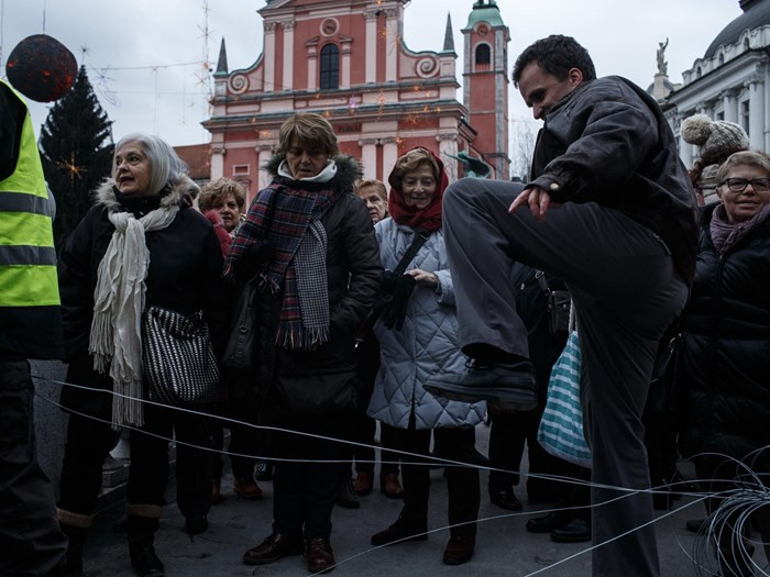 Na predsilvestrski dan se je ob 15.00 zagradilo šest mostov v centru Ljubljane. Po vzoru obmejnega ožičenja se je na šestih prehodnih območjih za pešce postavilo žičnate ovire, ki razen nekaj nejevolje priložnostnih kolesarjev in osebno prisotnega župana Jankovića niso niti pretirano ovirale gibanja niti niso povzročile kakšne škode ob postavitvi. Žico je v dokaj kratkem času odstranila intervencijska služba MOL, zadevo si je prišla ogledat tudi policija. Ker je šlo za nemi protest lahko zgolj ugibamo ali gre za politično opredeljevanje proti žiletkam na meji ali za družbeni eksperiment ali morebiti za umetniški projekt ali smo bili priča pobalinski potezi organiziranih falotov?