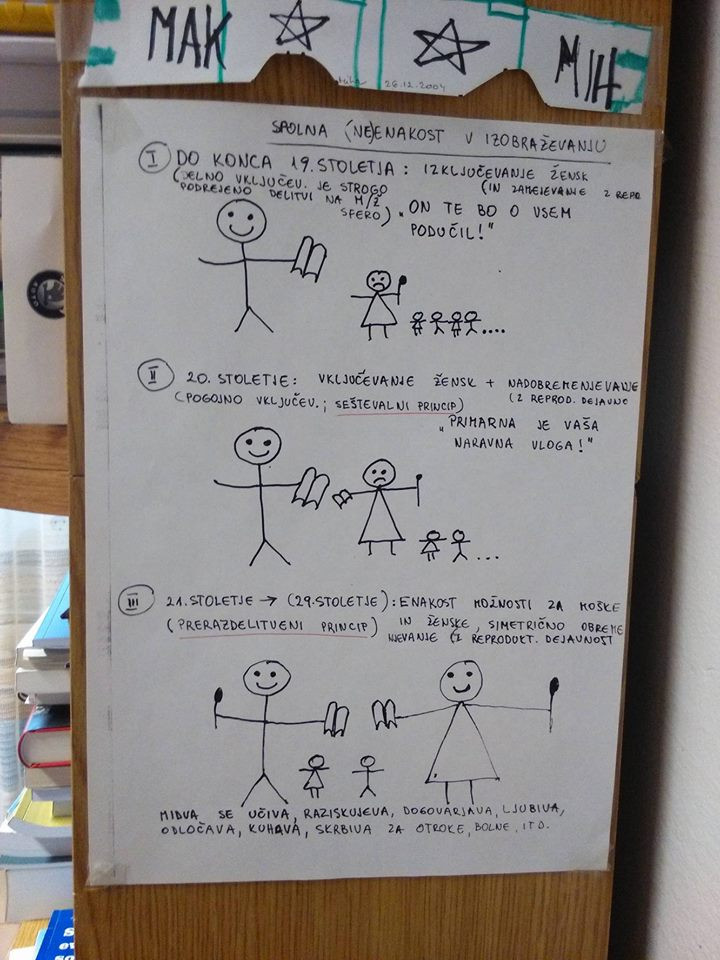 Kateri so primarni in kateri sekundarni problemi, s katerimi se soočajo ženske? Bi moral biti fokus na enakosti na trgu dela, morda enakovredni delitvi dela v gospodinjstvu ali vstopu v akademske kroge? Jogan predstavi razvoj na področju vstopa žensk v univerze, s katerim se je raziskovalno ukvarjala: