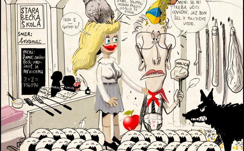 Superminister za suhe veje družbe Žiga Turk, se je lotil razkopavanja standardov in normativov v našem celotnem sistemu vzgoje in izobraževanja, češ da je povsem neučinkovit. Njegove besede: "Čeprav se je v preteklosti standard v našem šolstvu izboljševal, študije kažejo, da znajo otroci zdaj manj, ne več," so na laž postavili rezultati Mednarodne raziskave trendov znanja matematike in naravoslovja, TIMSS 2011, ki so pokazali, da naši osnovnošolci pri omenjenih znanjih v samem svetovnem vrhu. Glede na buče, ki jih superminister Žiga tako vztrajno kotali, je skrajni čas, da ga pošljemo še malo v šolo. A ne v državno, ker mu te niso všeč, pač pa jo bomo posebej zanj ustvarili v tokratni Risanki.