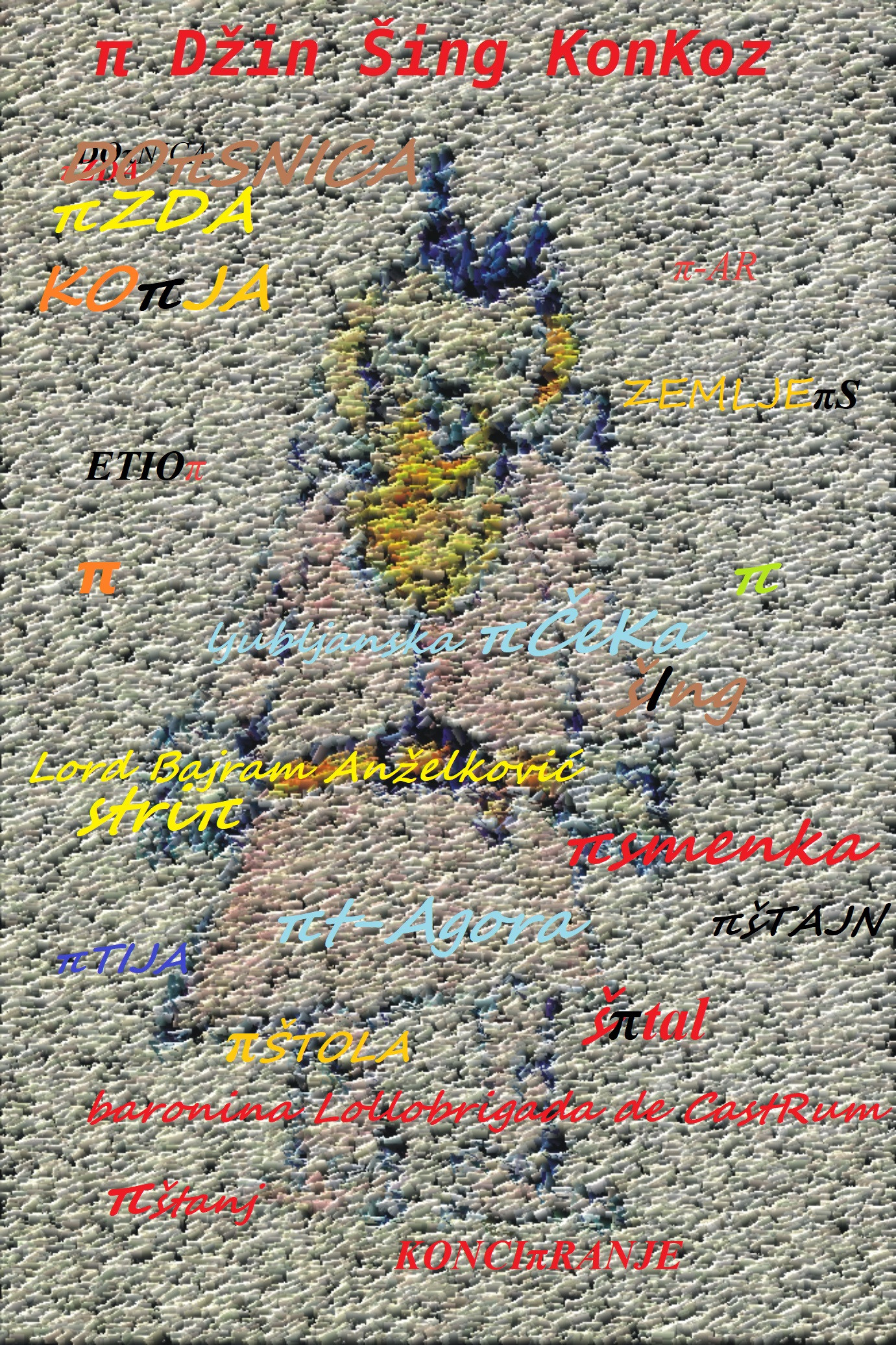 Zgodnja pomlad, 2026. Obmejna vzhodna separatistična kneževina KonKoz s severnim krakom in ducatom zdravilišč. Raztezala se je od Lendave do Bistrice ob Sotli. Dasiravno se je spočetka za nekatere evropske opazovalce zdelo, da je kneževina pod vodstvom kneza π Džin Šinga zgolj kratkotrajna tvorba, je bilo zdaj že jasno, da temu ni tako. Bila je dobro utrjena, mondeni zdraviliški in zdravstveni turizem in solidne investicije z vzhoda so zaradi privlačnega okolja v tej pred kratim nastali davčni oazi kazali pozitivne učinke. Zdaj je čas, da povemo malo več o πdžinšingovskem (izg. Pi-džinšingovskem) idiolektu, ki sta ga gotovo vsaj bežno že zaznali v prvih dveh delih, pa čeprav je po izgovorjavi skorajda scela identičen izgovorjavi v slovenščini. Najprej omenimo, kar sicer že vemo. Neki slovenski minister se je spomladi leta 2020 preimenoval v matematični simbol π. Dve leti kasneje je izvedel razširitev svojega imena v obliki anagrama imena Ši Džinpinga, pri čemer je zlog pi zamenjal s simbolom π. S tem je postal π Džin Šing. Vse to se je zgodilo prej po posluhu kot kakšni notranji logiki. Predvsem mu je stvar dobro zvenela v ušesih. Šele Lord Bajram Andželković je leta 2025 uvidel polni potencial imena, v kolikor mu razširi pomen in s tem dodatno osmisli dogajanje na obmejnem območju Slovenije, kar je pripomoglo k ustanovitvi KonKoza. Istočasno s pomensko razširitvijo imena π Džin Šinga in konstrukcijo pojma ŠIng je bil s pomočjo π-AR (izg. PI-ar) prijemov, ki so jih izražali striπ (iz. STRI-PI) na Muskovih družbenih omrežjih, lansiran tudi πdžinšingovki (izg. pi-džinšingovski) idiolekt. Ta se je v KonKozu dodobra prijel. Pri idiolektu ni šlo niti za namensko redukcijo in fiksacijo pomena besed, s katerim bi osiromašili jezik in preko tega kontrolirali mišljenje, niti za distanciranje od slovenščine s kakšno obliko unikatne slengovske govorice, ki bi jo razumeli zgolj v KonKozu. Primarno je idiolekt, začenši z imenom π Džin Šing kot nulto točko, zasledoval inflacijo pomena besed preko destabilizacije in obogatitve pomenskega polja besed, ki so vsebovale matematični simbol π. Ta je v besedah, kjer je nadomestil zlog pi, in teh ni bilo malo, deloval kakor nekakšna mana, ki uvaja inflacijo pomena. Minimalna razlika, ki jo je uvedel simbol π v besedo z ničemer drugim kot zgolj s krajšim premolkom pri izgovorjavi, je umetno proizvajala paleto novih pomenov znotraj besede. Učinkovitost je izhajala iz enigmatičnosti, ki se je kopičila okoli priviligiranega simbola π. Pri funkciji πdžinšingovskega (izg. pi-džinšingovskega) idiolekta imamo torej opravka s kontrolirano absurdnostjo, ki deluje nadvse zapeljivo in skozi minimalna sredstva proizvaja masivne učinke.
