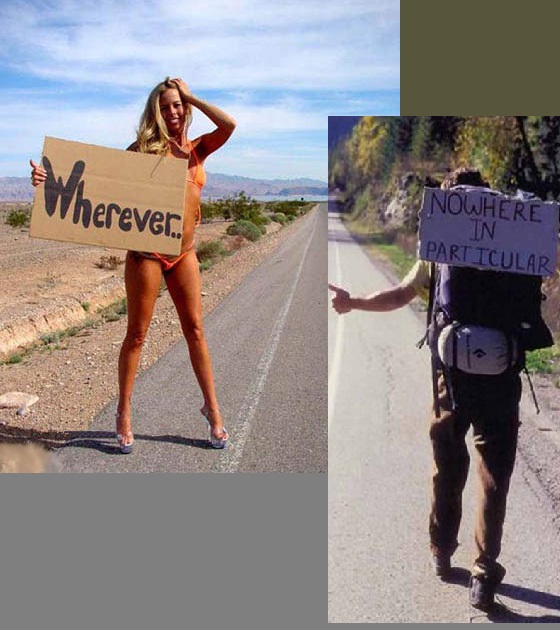 Ne bomo skrivali, pristaši smo slednjega. Koncept narekuje avanturizem, ta pa zahteva trmasto ali noro voljo (nori so več kot pogumni, ker ne jebejo strahu), prilagajanje situaciji, iznajdljivost, povečano percepiranje in preprosti blef. Bistvo je v tem, da za male ali nikakršne pare vlečeš špure izven prestolnice, pri tem nimaš časovnih ali materialnih okvirjev, ki narekujejo ziheraštvo. Na primer: štop na Dunaj ali bognedaj, v Rim ali Berlin (tam najti skvot ali se potikati po ulici in žicat), highway to balkan apalachia alias z starim rog biciklom po istrskih vaseh (nato spanje na opuščenih kozolcih, brez ognja, žicanje kmetov za hrano oz. delo na kmetiji za le-to), ali manjša podjetja petih posameznikov, od katerih vsak prispeva 50 evrov, eden ima pa avto (nato ves keš za hrvaške cestnine, brodarnine in penine, spanje na neoznačenih ali nudističnih plažah, brez ognja, potikanje ali tatinstvo v obalnih mestecih hrvaškega otočja). Pri tem konceptu vzemite s sabo inštrument (za igranje na ulici) če ste muzičarke, kup fanzinov in DIY kompilacij in poročil o domačem dogajanju (če ste unter-gruntar), katere se da zatrejdat za vino in kruh, pa tudi keš. Tudi prvine gledališkega improviziranja, skratka ulični teater in podobno, vse to se dejansko izkaže kot oblika zdravstvenega zavarovanja, ki vam omogoča zdravje in preživetje. V tem konceptu tudi ni omejitev - štopanje špediterjev a.k.a. đabe uvoz v Španijo; skok na tovorno ladjo (po oddani neobdavčeni podkupnini) in dobro jutro Maroko; za športne - peš do Istanbula (kar je nenadjebljiva izkušnja), nenazadnje kolovratenje po francoskem podeželju (do katerega prištopaš, jebiga alpe skenslajo bicikel) in delo na poljih nektarin, breskev, grozdja, sivke. Takšno početje pa zahteva celo žensko ali moža, in trije res hitro postanejo gužva. Tisti, ki vas je pol, in nimate jajčnikov po gusarsko (z enim učem) avanturi naproti, raje glejte fuzbal in se sekirajte za volilne rezultate. Za vse cele in opolno-jajčene ljudi pa : svet čaka!!!