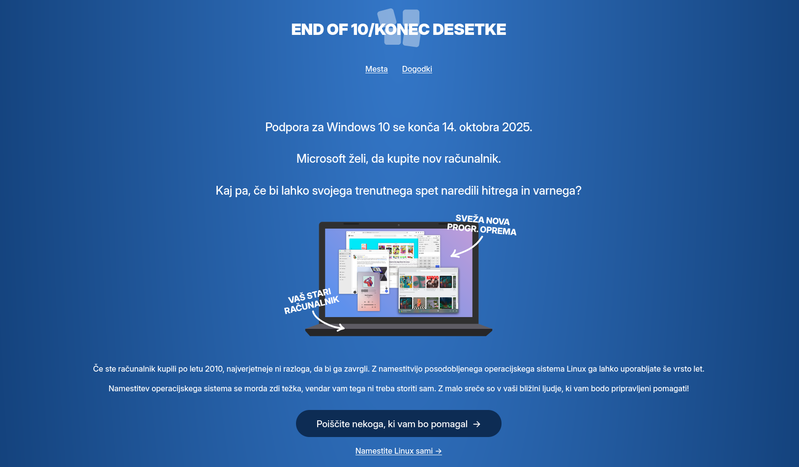 14. oktobra bo Microsoft prenehal izdajati varnostne popravke za operacijski sistem Windows 10. Nadgradnja na verzijo 11 ni sama po sebi umevna, saj so Windows 11 računsko precej bolj zahtevni. Starejši računalniki bodo po posodobitvi počasnejši, čemur pa se lahko lastniki izognejo, če ne posodobijo Windowsov, temveč Windowse zamenjajo operacijski sistem z distribucijo GNU/Linux operacijskega sistema, ki normalno deluje tudi na starejših računalnikih.