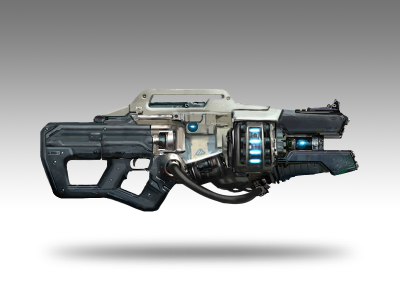"Part plasma machine gun, part ecto-plasma beam in the style of Ghostbusters. Pressing the primary trigger will fire off green plasma blasts at a semi-fast rate. This is useful for medium to close range attacks and the plasma blasts are big enough that you don't need perfect accuracy to hit your target. The secondary fire is a plasma beam that locks on and follows your target dealing a steady stream of damage. Although not extraordinarily powerful, this will suck the life out of your opponent."