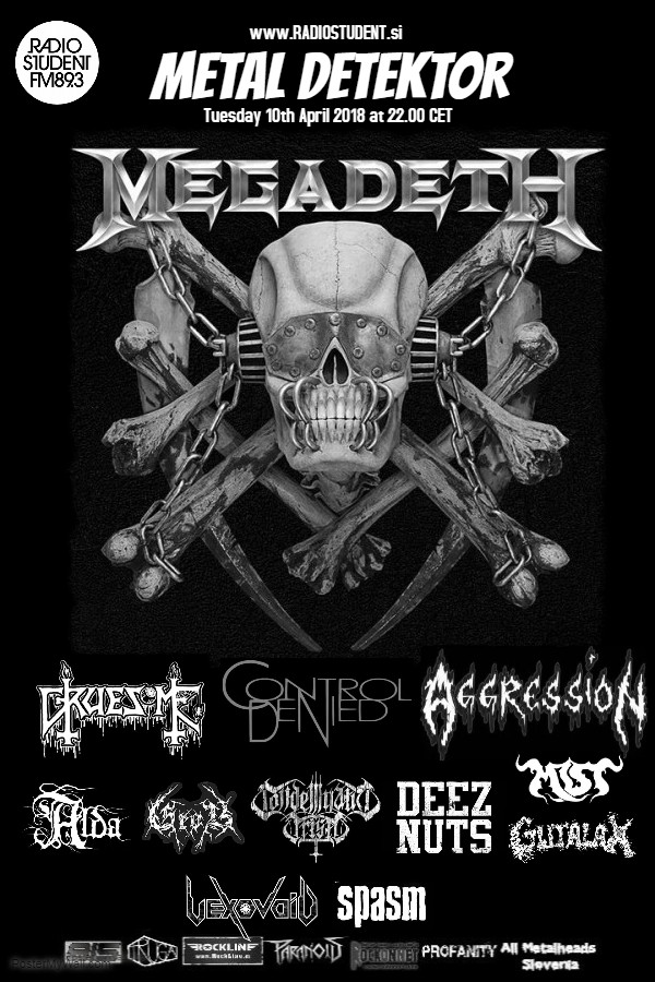 V torek se bomo ozrli na napovedano reizdajo debitantskega albuma zasedbe Megadeth. Letos Mustaine in druščina slavijo 35 let, tako da še kakšno o tem. Sledijo novosti s področja death metala - novo plato napovedujejo Gruesome, na punk thrash področju so spet aktivni kanadski Aggression, nove komade pa imajo tudi domači bendi: Mist, Condemnatio Cristi in Grob.