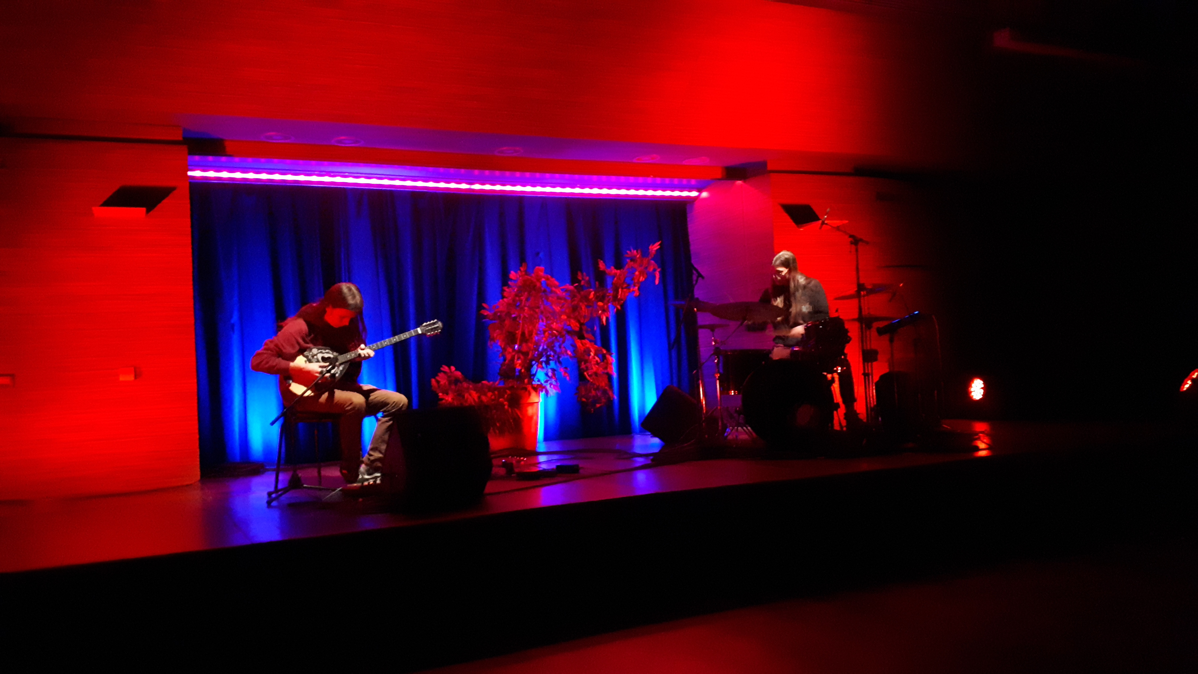 Na odru so medtem čakali: Gajev bobnarski set, namesto umetne palme tokrat prava lončnica ter kitarski pedali in bouzouki, saj se je .čunfa, kot kaže, odločil pustiti svoj set doma in se zadeve lotiti bolj organsko in z manj sintetike. Fanta sta prišla na oder v sproščenem duhu in morda se bo kakšnemu rigidnemu muzičistu zdelo nadaljnje besedičenje povsem nepovezano, pa vendar je ta brezskrbnost v določeni meri presevala iz njunih oprav. Gaj je svoje priljubljene srajce s pisanimi potiski zamenjal s črnim hoodiejem, ki je zgovorno izkazoval njegovo izvorno pripadništvo poljskim black metalcem Mgła in kot tak tudi posredno nakazoval eno izmed niti, ki oba glasbenika povezuje že od prej.