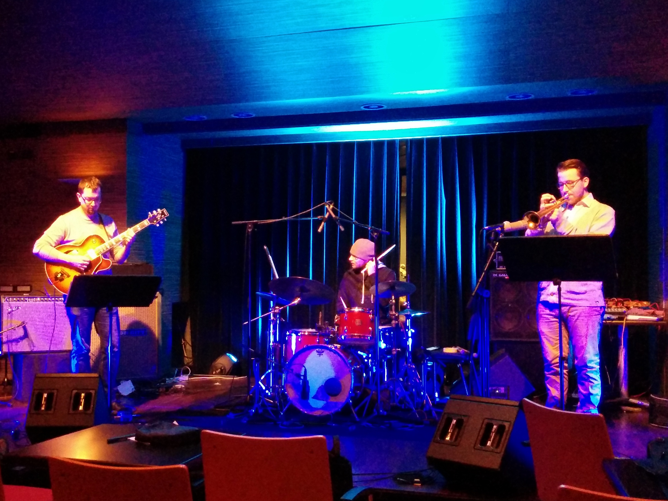 Zadnja na vrsti je bila mednarodna zasedba, pri kateri se je Boštjanu Simonu na saksofonu pridružil še norveški Stephan Meidell na strunah in portugalski Luis Candeias za bobni. Pozornost je takoj na začetku nase povlekel norveški strunar, ki je v prvi skladbi prijel za redko videno in slišano šeststrunsko bas kitaro tipa fender. Zvok te kitare je zvočni izkušnji dodal elemente stare kalifornijske surf glasbe. Bend se je po raziskovalnosti našel nekje med Bassless Triom in triom Trojnik, a bolj na strani prizemljenih struktur. Ponovno smo lahko slišali repetitivnejše rock vzorce, ki so s pomočjo druge jazzmaster kitare poustvarjali duh alternativnih skupin s konca prejšnjega stoletja. Čeprav je s stereotipno alter-rockovskim zvokom pozornost nase vlekel predvsem kitarist, je bil ta z enostavnimi riffi na momente nekoliko suhoparen. Lahko da je to tudi problem ne ravno najboljše zvočne usklajenosti in glasnosti, kar se hitro zgodi ob obsežnem pedal boardu. Pogosto se je namreč saksofon nekoliko umaknil v ozadje, za zvočni zid kitarskega šuma, ustvarjenega namerno ali ne.