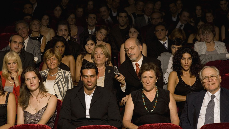 Do sedeža se mi je uspelo prebiti s hitrostjo ljubljanskega cestnega prometa v običajnem kolapsu tam med tretjo in peto popoldne. Le po eni skrbno spisani številki in pogledu na jasno označen sedež se prostor, ki mi je bil določen, najde izredno hitro. Tokrat se poleg usede gospod in s pogledom prestrašene srne pred avtomobilom ves čas opazuje, če ga bo kdo opazil. Kisli nasmeh ob strani ga ob vhodu vljudno pozdravi in mu ponudi pomoč, ki pa jo odkloni. Na drugi strani pa se že približuje glasna starejša gospa, ki želi, ravno nasprotno od soseda, vso pozornost preusmeriti nase. V tistih nekaj minutah pred začetkom predstave celoten parter izve, da je redna abonentka in da tokrat sedi na XY sedežu in ne tam, kjer sedi vedno: na petem od leve v tretji vrsti poleg tiste prijazne gospe iz sosednjega bloka.