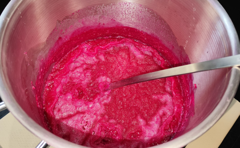 Če smo v sprednjem delu galerije priča estetizirani reprezentaciji dela, se v zadnjem z njim bolj neposredno srečamo. Ključna je poteza, ki ta iluzorni prostor dela postavlja v čisto zadnji del galerije, vmesni prostor pa pušča prazen, kar podaljša prehod in pripomore k občutku odrinjenosti delavk. Delo je tu prisotno v obliki fizičnega objekta, ki je zanj potreben – velikega lonca na ugasnjeni grelni plošči. V odsotnosti toplote se je zmes obarvanega sladkorja strdila nazaj v kristalno strukturo. Lonec dopolnjuje le še tabla z opisom postopka priprave slaščic, ki se bere skoraj kot poezija. Kar bi bil sicer suhoparen recept, dopolnijo verzi, ki od vsega na razstavi najbolj neposredno pričajo o tem, kako mukotrpno in dolgotrajno je tovarniško delo. Barve mešanice, na katero mora biti pozorna delavka, so primerjane z učinki dela na njenem telesu, kot je od vročine pordela koža na licih. V postopek se sporadično vrivajo opomini, naj delavka ne počiva, zaključi pa se z dvoumnim ukazom pogoltni.