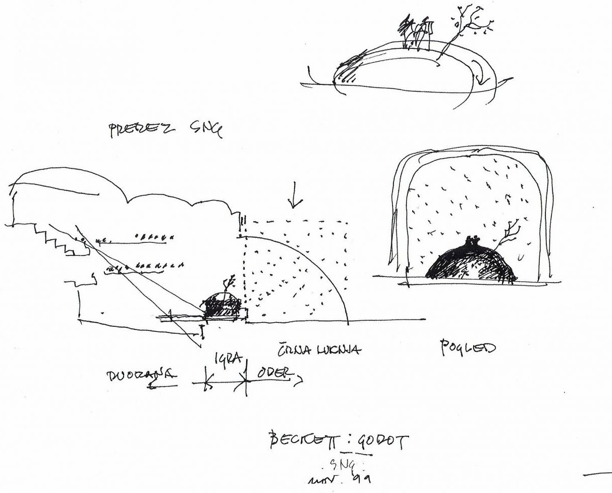 Ta »ne maram« Mete Hočevar pa nas vodi k temu, česar v knjižicah ni. Prostori igre so izšli 12 let po prelomni predstavi, brez katere težko govorimo o razvoju slovenskega gledališča in scenografije v drugi polovici dvajsetega stoletja, Krst pod Triglavom Gledališča sester Scipion Nasice iz leta 1986. Dramaturginja Eda Čufer, ki je bila skupaj z režiserjem Draganom Živadinovom in scenografom Miranom Moharjem kreativno jedro skupine, je v članku Atletika očesa iz leta 2002 opisala menjavo paradigem, ki jo je sprožila predstava kot odmik od reprezentacijskega tipa gledališča, temelječega na zgodbi, k umetniškim strategijam, izhajajočim iz samega odra in njegove realnosti. Namesto mimesisa se pojavi semioza - Krst pod Triglavom je literarni diskurz zamenjal z likovnim ter na oder ob bobnenju glasbe skupine Laibach postavil slike Kandinskega in avantgardno scenografijo Adolpha Appie, odrsko dogajanje pa je bilo oblikovano kot niz gibalnih sekvenc. Scenografija ni podpirala zgodbe ‒ bila je samosvoj element, ki ga je gledalec s predznanjem lahko prebral in intertekstualno povezal z drugimi nivoji predstave.