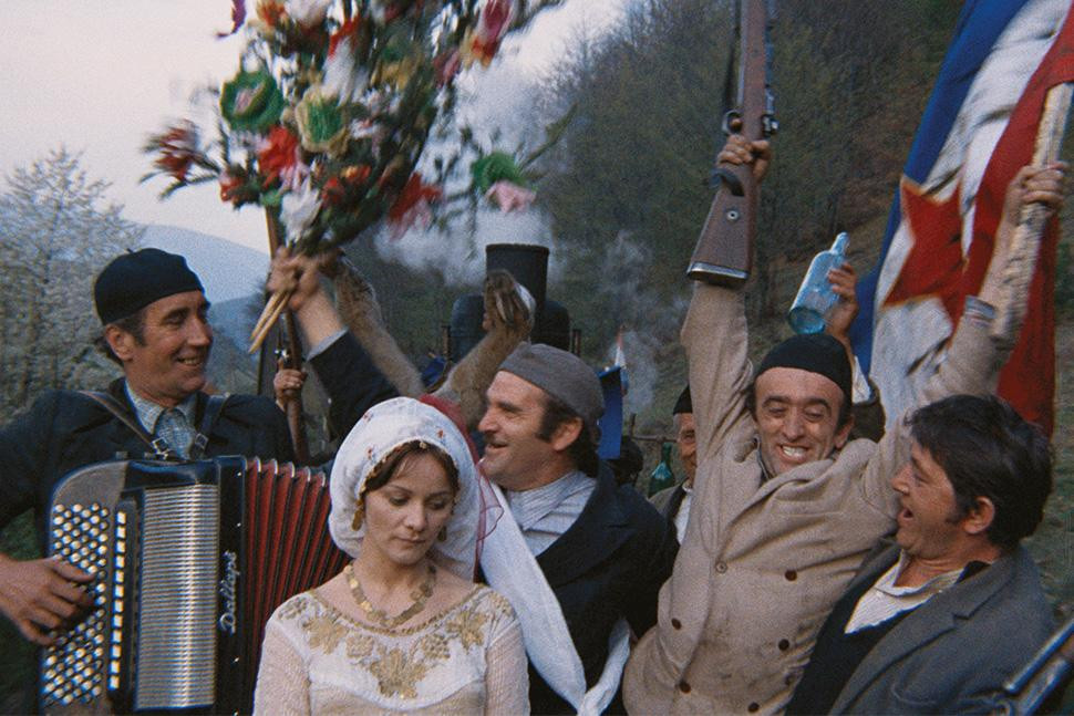 Slike iz življenja udarnika nas v prvem kadru potegnejo v ritem filma. Kamera Karpa Godine nas umesti na drveč vlak, ki nevesto skupaj z radoživimi trubači in drugimi člani procesije dostavlja v vas našega, na tej točki še anonimnega junaka. Godina energično sestavlja skoraj statične slike, ki jih izdaja le mimo bežeča pokrajina. Obenem momentum ustvarjajo sunkoviti montažni rezi, rohnenje lokomotive in glasba Bojana Adamiča, ki se kot motiv pojavlja skozi cel film.