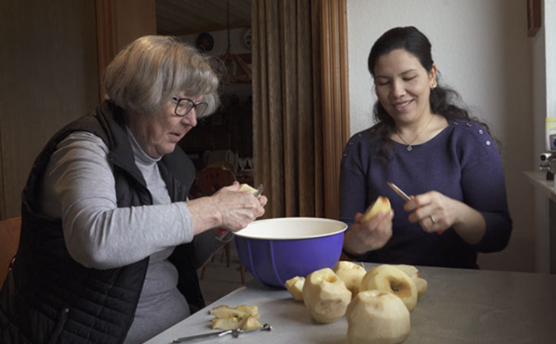 Prav zato je kuhinja tudi središče izmenjave nasvetov med starejšo in mlajšo priseljenko, med Metko in Soghro. Če je žensko delo nevidno, še ne pomeni, da produkt dela, pri katerem pride do menjave kultur, ni. Z Metkinimi besedami je nemška kuha postala zanimive šele ob prihodu priseljencev, med katerimi je bila tudi sama. Meni, da so bile nemške jedi pred tem dolgočasne in da so šele z dodatki pridobile nekaj zanimivega. V Odenwaldu so znani po svojem kochkäse, jedi iz sira, smetane in masla. Že s prvim navalom priseljencev v šestdesetih se je ta pojavil v nadgrajeni različici – kochkäse mit musik. Ta ima z dodatkom kumine in čebule pridih novih priseljencev, štajerska različica pa vključuje še bučno olje. Prav ta muzika je tisto, kar so priseljenke nekoč že prinesle. Prepričanje, da je izmenjava kultur tista, ki lahko nove in stare prebivalce države oplemeniti, je v filmu močno prisotno. Metka devet receptov kot žensko izročilo predaja režiserki, svoji nečakinji, kuharsko modrost pa predaja tudi Soghri, svoji afganistanski podnajemnici. Pa ne zgolj nemške, tudi slovensko!