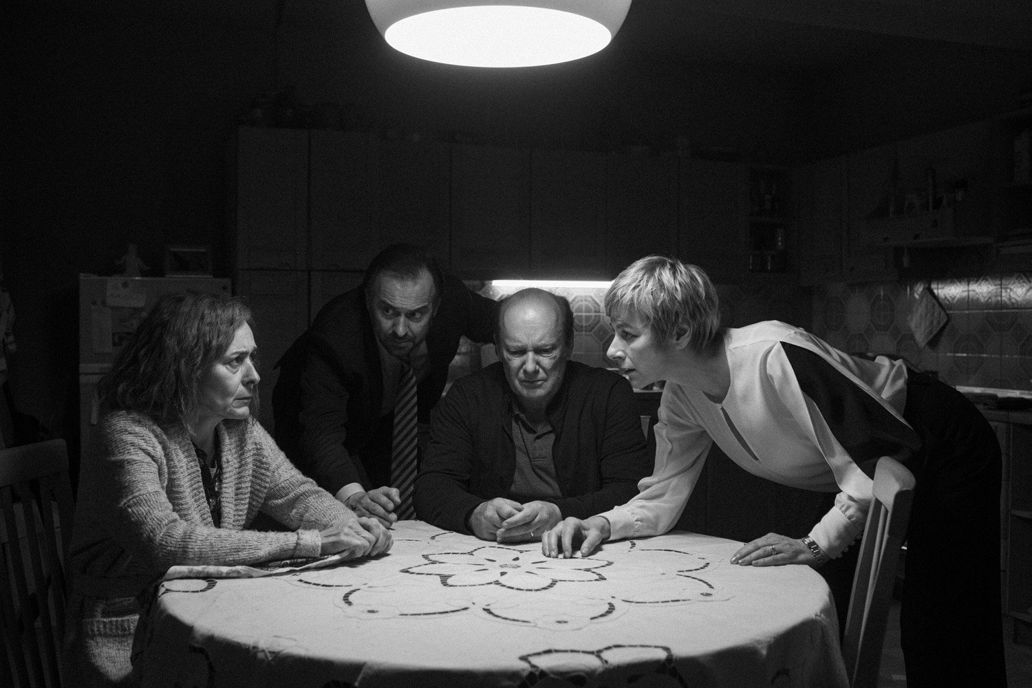 Po razkritju četverica ne zapusti več stanovanja. Film se ujame med štiri stene in začnejo se pogajanja, ki jih lahko na kratko povzamemo z »big biznis model in modelka bi rada z denarjem kupila srce, radnički par pa pravi, da se srca pa res ne da kupiti z denarjem.« V tej izmenjavi mnenj in pozicij para – kot je za RTV zapisala že Petra Meterc – predstavljata že videne stereotipe, nanašajoče se na njihov družbeni sloj. Film tako morda nezavedno iz svojih likov naredi stock characterje družbeno-kritičnega filma; če se potrudimo prevesti – to so liki na zalogo, ki jih znotraj žanrov najdemo v praktično istih pojavnih oblikah. Radnička sta tako morda res revna, a njuna revščina ju dela boljša človeka v smislu, da imata dostop do duhovnosti in morale, ki pa je buržujema že popolna španska vas. Slednja mislita, da se da »z denarjem vse kupiti«, kar big biznis model večkrat, in resno mislimo večkrat, popolnoma eksplicitno in v praktično takšni ubeseditvi izpostavi.
