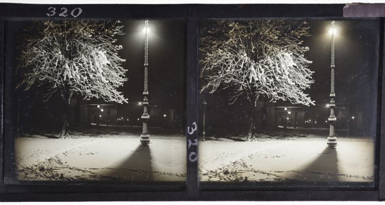 foto: Franc Ferjan, Ulica v Ljubljani, 1920 ̶ 1930, črno-beli stereo diapozitiv (MG-LJ)