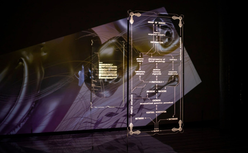 Lepo pozdravljeni v četrtkovih Kulturnih novicah. Minuli ponedeljek je bila v Galeriji Kamera na sporedu otvoritev intermedijskega projekta umetnikov Aljaža Rudolfa in Eve Smrekar z naslovom FaceOrFactory. Projekt je v osnovi raziskovalna platforma in hkrati korporacija, ki na podlagi podatkov iz biometričnega arhiva različnih oseb, kot so na primer obrazne poteze, DNK, emšo in tako naprej, skuša ustvarjati nove obraze. S tem avtorja postopno razvijata obraz kot kompleksen teritorij genetskih, pravnih, kozmetičnih, ekonomskih in političnih razmerij.