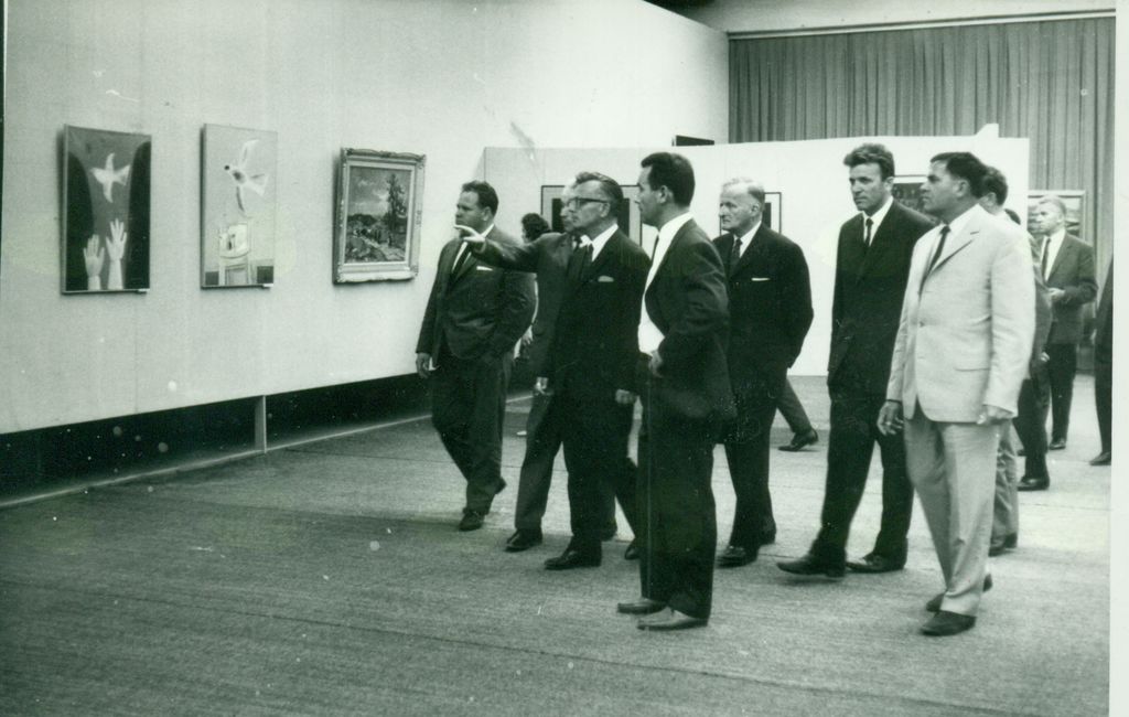 Pozdravljeni v petkovih Kulturnih novicah. Leto 1966, slabih 20 let od konca druge svetovne vojne ter 20 let od zapisa splošne deklaracije človekovih pravic. Demokratična federativna Jugoslavija pod pokroviteljstvom Organizacije združenih narodov v Slovenj Gradcu otvori razstavo z naslovom Mir, humanost in prijateljstvo med narodi. Jugoslovanska ambasada v Damasku na razstavo pošlje tudi štiri dela, ki se v zbirki niso ohranila. Med njimi je delo z naslovom Družina in Delavec sirskega slikarja Mahmouda Hammada. Prvo nagrado je za delo, ki je opozarjalo na nevarnost vojn prihodnosti, prejel švedski umetnik Jan Forsberg.