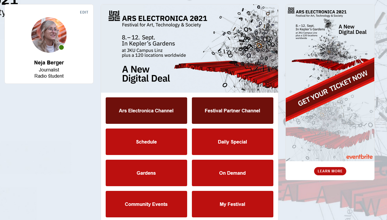 Sicer se obiskovalka morda vpraša, zakaj mora ustvariti dva računa na različnih platformah, da lahko dostopa do festivala, a na koncu jo pričaka uporabniški vmesnik, ki je tako enostaven, da ga lahko brez hudega razmišljanja uporablja vsakdo, ki je že kdaj naročal hrano preko aplikacij. S tem je rešen problem nedostopnosti, kar je najpomembneje. Po drugi strani pa super intuitivna aplikacija, na kateri se odvija festival, s katerim sicer povezujemo kritično poseganje v vzorce zasužnjenega scrollanja, na neki ravni postane del ravno tega.