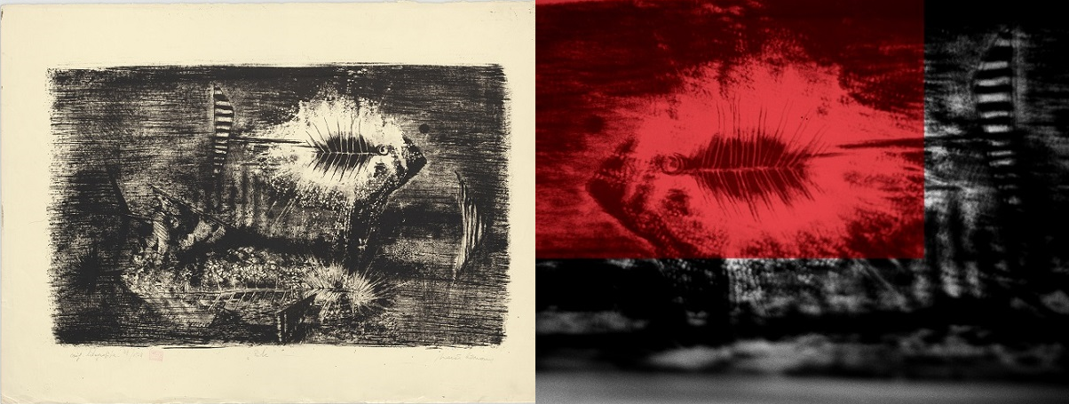 Sicer pa je možnost, da si gledalec nadene slušalke in se posveti le enemu delu naenkrat, kar dobrodošla. Tehnični zapleti namreč niso edini element, ki kazi našo izkušnjo. Ob vstopu v galerijo se kljub njeni majhnosti – oziroma prav zaradi nje – znajdemo v prostoru, tako nasičenem z deli, da se sprva težko orientiramo, saj so poleg del študentov na ogled tudi originalne grafike, iz katerih so ti črpali navdih. K sreči nam je v pomoč brošura, ki natančno začrta povezave med posameznim delom in zanj zaslužnimi umetniki, pri nekaterih delih pa ponuja tudi nekaj spremnih besed. Pa vendar je škoda, da večina dialoga steče med gledalcem in brošuro, ki deluje skoraj kot zemljevid, namesto med gledalcem in grafikami. Nastajanje razstave in njeno naselitev v fizični prostor nam opiše kuratorica.