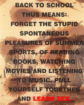 Na sliki: ... speaking of gesamtkunstwerk. Leta 2003 je naj proizvajalec mall cot Abercrombie & Fitch najel Slavoja Žižka, da je za kvartalni katalog te firme napisal spremni tekst. Skladno z našimi ugotovitvami, da gre pri popularni kulturi zgodnjih 2000-ih za enotno monumentalno umetnino, se ne čudimo, da je največje slovensko ime na področju popularne kulture v zgornjem spisu tudi ujelo bistvo serije Dawson's Creek.