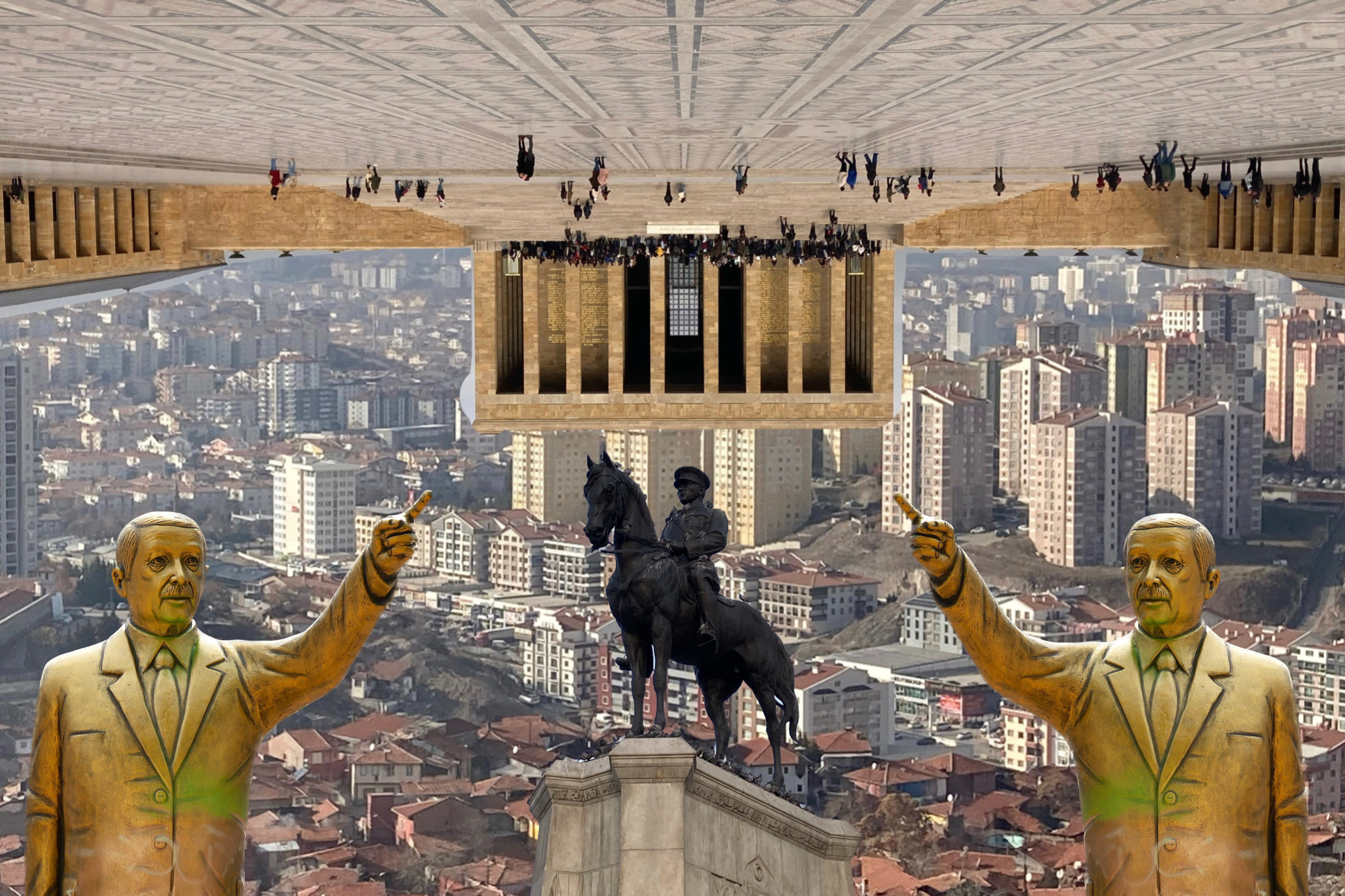 Letos oktobra bo minilo natanko sto let, odkar je Mustafa Kemal Atatürk ustanovil turško republiko. Že čez tri dni pa bo v Turčiji potekal drugi krog predsedniških volitev, glede katerih so mnogi upali, da bodo Turčijo iz neoosmanskega krča vrnile nazaj v objem očka Atatürka. A nova zmaga sedanjega predsednika Recepa Tayyipa Erdoğana je vedno bližje. In še en predsedniški mandat je – po dvajsetih letih na oblasti – edino, kar Erdoğan potrebuje, da zabije zadnji žebelj v krsto političnega kemalizma. Kulturni boj med starim in novim očetom Turčije je te dni najbolj intenziven predvsem v simbolni vpregi predvolilnih kampanj. Ideološka nasprotja med Atatürkom in Erdoğanom ali staro in novo Turčijo pa niso očitna zgolj v trenutkih političnega drgetanja, v prestolnici Ankari jih lahko vsakodnevno zaznamo kar na mestni veduti.