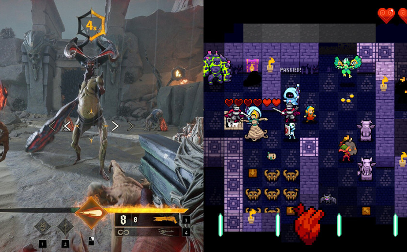 Tokrat bomo vsi štirje celo uro v taktu z nogo butali ob tla, pretekli mesec smo namreč preigravali Metal: Hellsinger in Crypt of the NecroDancer. Ritmični igri sta si podobni v tem, da sta z Guitar Herota in Dance Dance Revolution spretno odrezali glasbeni cepič ter z njim oplemenitili deblo nasilnejših akcijskih zvrsti.