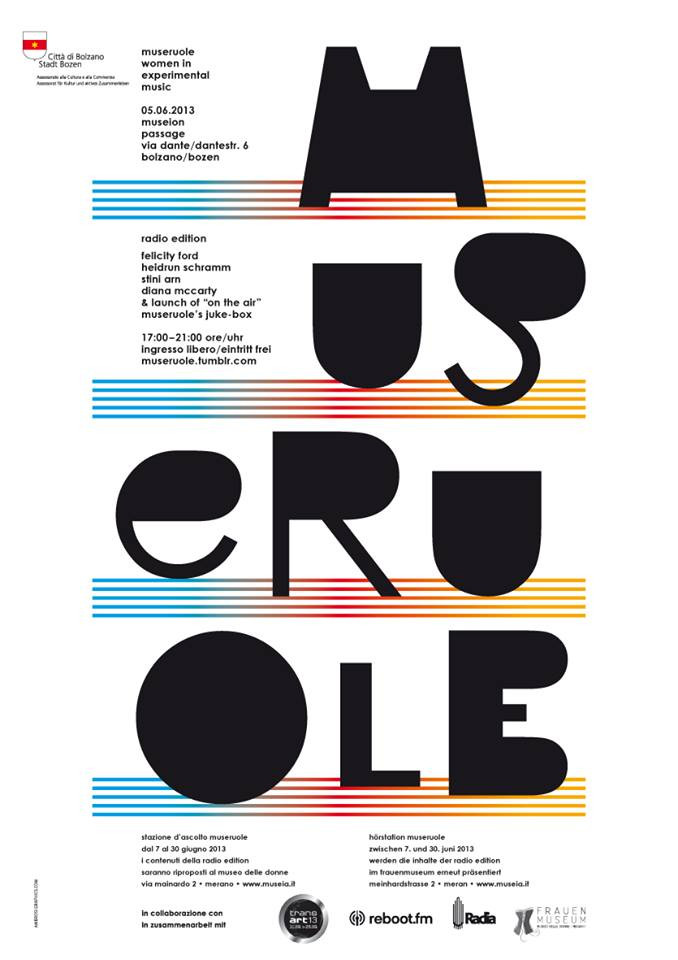 MuseRuole is a festival dedicated to experimental music and puts contemporary female musicians and performers at its centre. It is a journey of discovery into the wide world of current musical research, looking for specifically female modes of expression, with its own grammar and personal style. This year (2013) we focus on the theme of radio as a space for musical research and a medium of technological innovation, including notions of sending and receiving in equal measure.