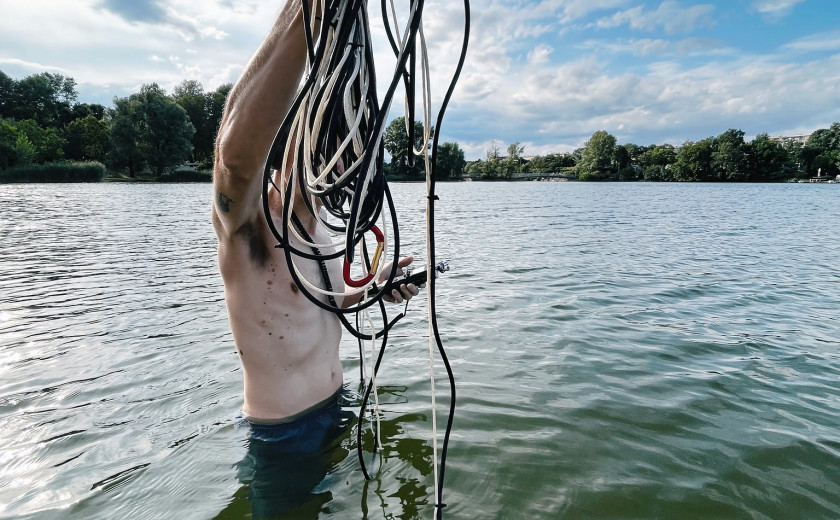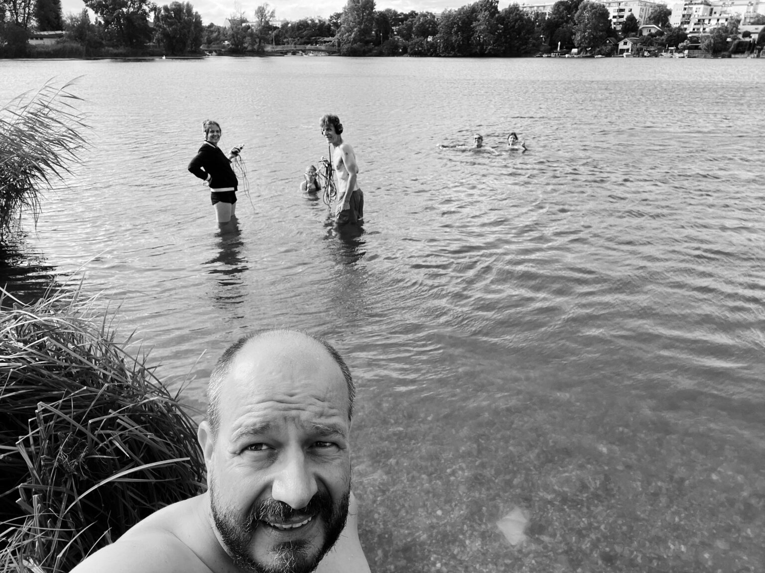 Oops, something has happened! The microphone fell into the water. Quel Malheur! Thank goodness our special guest Stefan Nussbaumer shrink-wrapped the microphones and nothing happened to them. So, by chance and without intention, exciting worlds of sound opened up that we don’t want to deprive you of. Have a nice summer! (… and happy winter to Sally & Jon!)