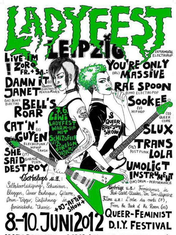 Ladyfest v Leipzigu spada med številne feministične in queerovske festivale, ki so vzniknili po letu 2000, po prvem tovrstnem festivalu, organiziranem v Olympii v ameriški zvezni državi Washington, kjer je bila v devetdesetih zelo močna riot grrrl scena. Danes ima skoraj vsako večje mesto v Evropi svoj Ladyfest, čeprav vsi festivali niso posvojili tega imena. Kako je prišlo do Ladyfesta v Leipzigu, mestu, ki leži v nekdanjem vzhodnem delu Nemčije in pogosto ostaja v senci berlinske metropole, sem vprašala eno od organizatork, Janno.