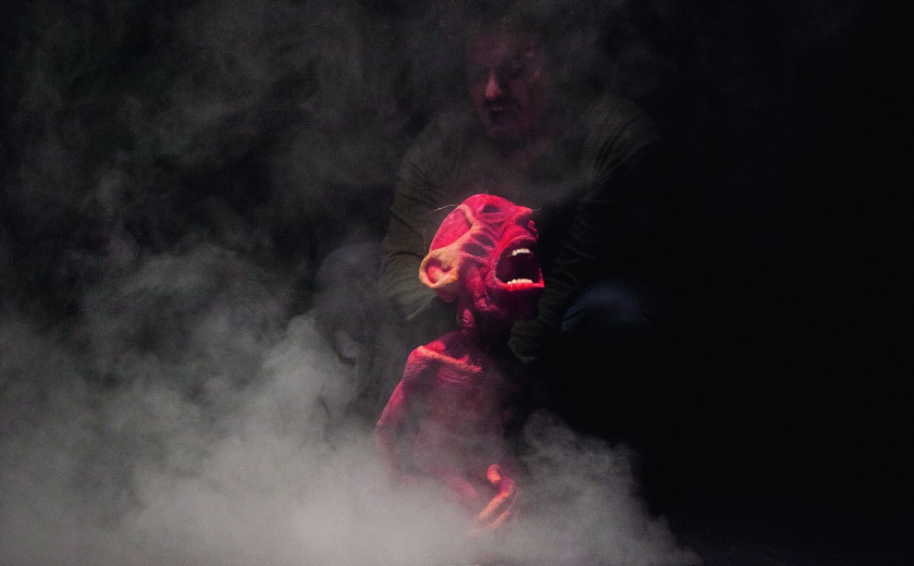 Festival Lutke je tudi letos nepresenetljivo s seboj pripeljal precej večjih produkcij, ki nas lahko očarajo že zgolj z materialnostjo, s katero se udejanjajo. V kontekstu festivala lahko zato včasih celo bolj izstopa manjša, preprostejša predstava. Ena takšnih je bil letos Teror, kot je bil naslov predstave preveden iz izvirnega francoskega Terreur. Uprizoritev francoskega gledališča Les Yeux Creux je zelo minimalistična: na odru sta samo igralec in lutka brez dodatne scenografije ali soigralcev. Tudi povzetek dogajanja polurne miniaturke za odrasle težko razvlečemo na kaj dosti več kot lutka, ki kriči od bolečin.