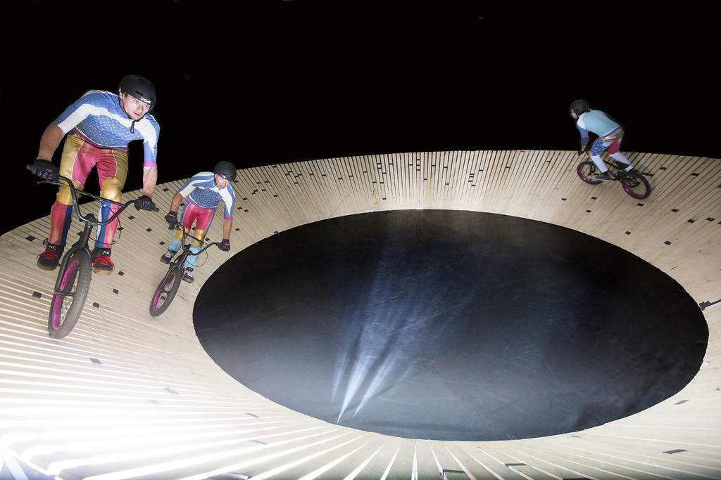 Začenjamo s Pisto sveta, ki smo si jo pravzaprav ogledali že konec julija v Stari elektrarni. Betontanc se je s to predstavo vrnil k svojim koreninam – fizičnemu gledališču. Na tem mestu se ne bomo spuščali v formalne vidike izvedbe, ki je v tehničnem smislu pravzaprav brezhibna. Ekipi ne manjka perfekcije pri izvedbi vratolomij z BMX-kolesi, na katerih temelji mikavna uprizoritev neke fascinacije z dinamiko, ki jo premore adrenalinski šport. Prej nas bo zanimal pomen ponavljajočih se gibov v koncentričnih krogih: gre za ujetost v neko mašinerijo, in če da, kaj nam s ponazoritvijo nekega monotonega ustroja komad v resnici želi sporočiti? Meja med igro in neigro se zdi jasno postavljena, a vprašanje je, pravzaprav, zakaj je tako. Zblojeni turist v vlogi neke vrste naratorja je zaigran, a vse do konca predstave ostaja prisotno vprašanje, ali je tovrstna igra bila nujna in ali bi morda sporočilo bilo jasnejše, če bi njegovo »zunanje/splošno« mnenje ostalo neizrečeno.