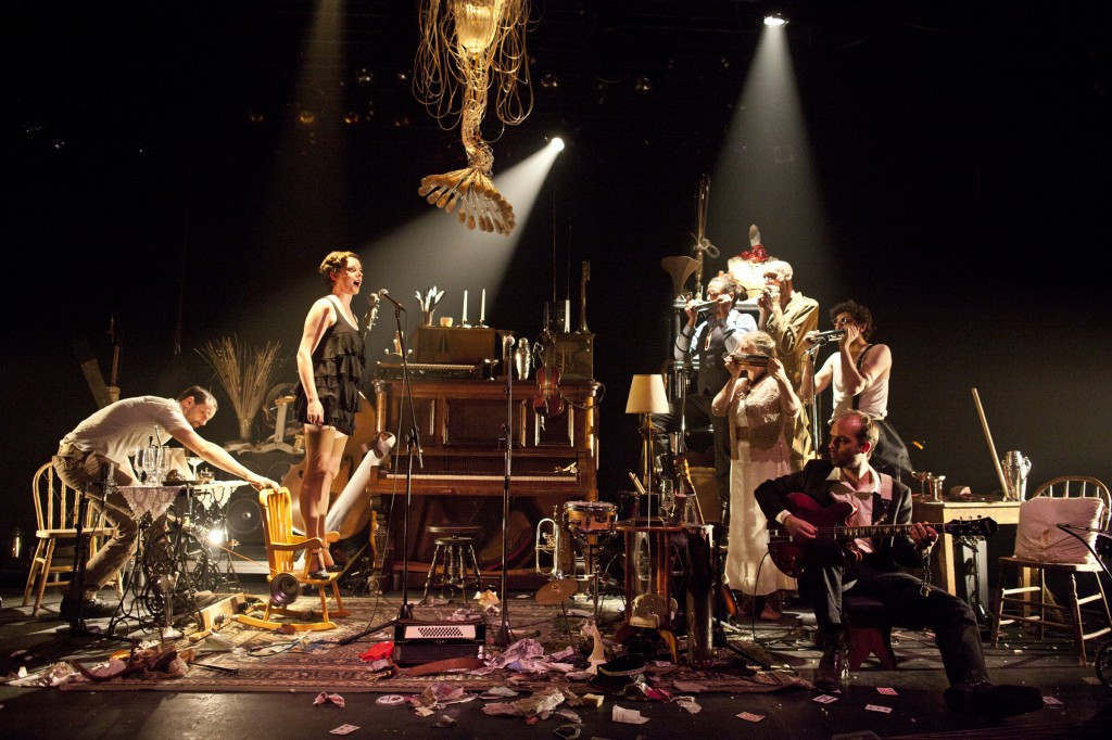 Hitremu in intenzivnemu spreminjanju atmosfere ustreza tudi malo morje inštrumentov na odru. Posebnost orkestra je v tem, da poleg klasičnih inštrumentov, kot so klavir, kontrabas, kitara ipd., izvabljajo še ne slišane zvoke iz še ne videnih improviziranih inštrumentov. Ti so včasih narejeni iz vsakdanjih predmetov, včasih pa zavozlani in zvarjeni skupaj iz raznoraznih materialov na zelo nenavaden način. Nenavadnost, poigravanje z žanri, preskakovanje iz enega časovnega obdobja in kulturnega ozadja v drugo, mešanje klasičnih in izvirnih zvokov ter skrbno naštudirane vokalne interpretacije. Eklekticizem v svoji najbolj harmonični obliki, ki lahko začara gledalca.