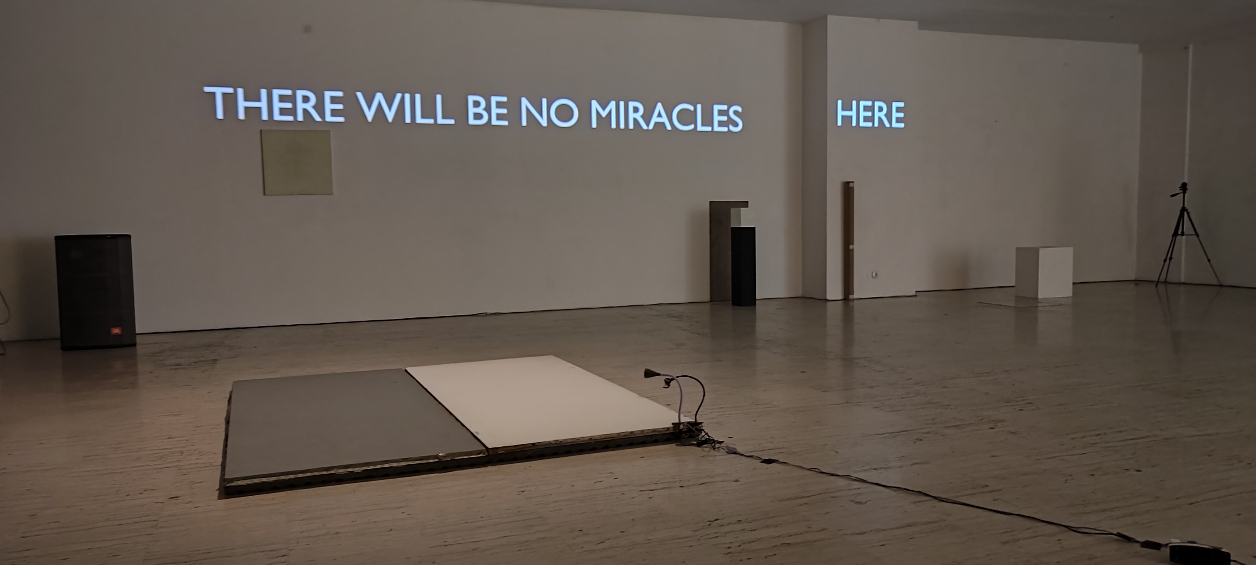 Ko zvečer 26. junija v Cirkulaciji 2 čakam na začetek perfromansa Vrt – muzikal režiserja Gotvana Vlada Repnika, je čez steno že projiciran napis »There will be no miracles« in nato na stebru še »here«. Oziroma – Nobenih čudežev ne bo tukaj. Napis na steni me opozori točno na to odprto realnost – ni čudežev, je pa odprta realnost, v kateri potekajo stvari.