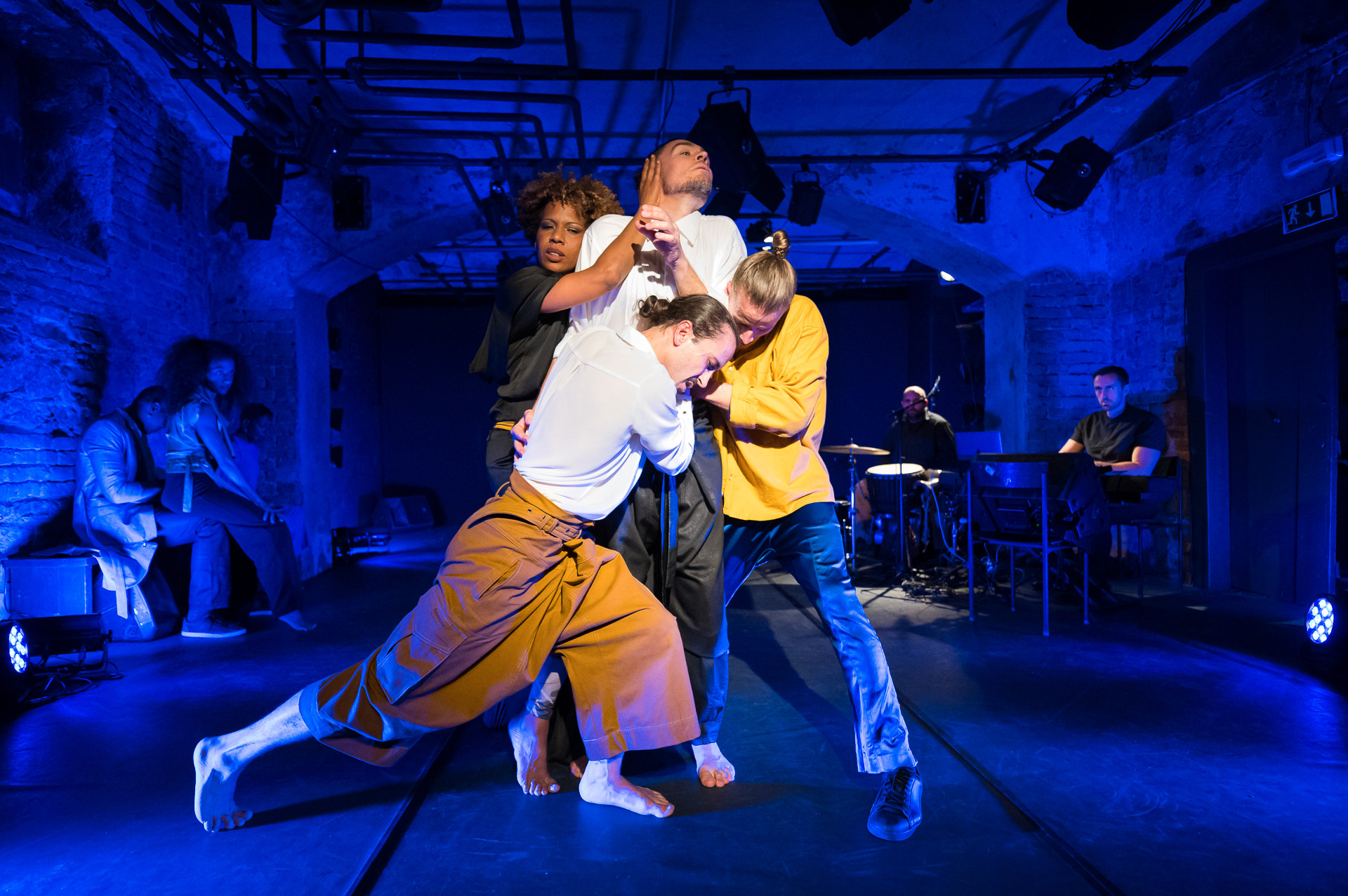 Vsi plesalci so precej uspešno prehajali in mešali omenjene plesne sloge. Afriškim plesom in hiphopu, ki ima že sam afriške korenine, je skupno odzivanje na glasbo ‒ bodisi kot upoštevanje diktata ritma bodisi kot dialog plesa in glasbene spremljave. To je bilo še toliko bolj izpostavljeno z vidika v živo izvajane glasbe, ki se je lahko odzivala na performerje. Sledenje ritmu in glasbi je bilo prisotno predvsem v eksplozivnih in odrezavih hiphop momentih, ki so v večini vsebovali odtenek konflikta ali konfrontacije. Afriški momenti pa so skočili dlje iz tega ritmičnega okvirja, tako da je gib prevzel vodilno vlogo in že skoraj prehiteval oziroma napovedoval glasbo.