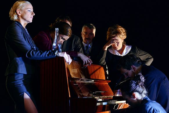 Lahko bi rekli, da je vodilo režije izrek: „Hujši ste kot zveri“. V tej beznici, v kateri se srečujejo posebneži, je resnica pač relativna in odpuščanje nemogoče. Tako so tudi luči v prvi polovici predstave močne, osvetljujejo celotno dvorano. Kruto realnost, ki jo drama simbolizira, nabijajo naravnost v obraz. Igralci se sprehajajo mimo parterja, se usedejo na prost sedež. Celotno predstavo divje popivajo, hodijo ven in noter iz dvorane V zraku in kričijo po avli. V zraku se voha alkohol. Skratka, uporabljajo celotno stavbo Drame kot uprizoritveni prostor. Vendar pa ta koncept ni preveč inovativen. Lahko bi celo rekli, da je starejši od Šeligove drame.