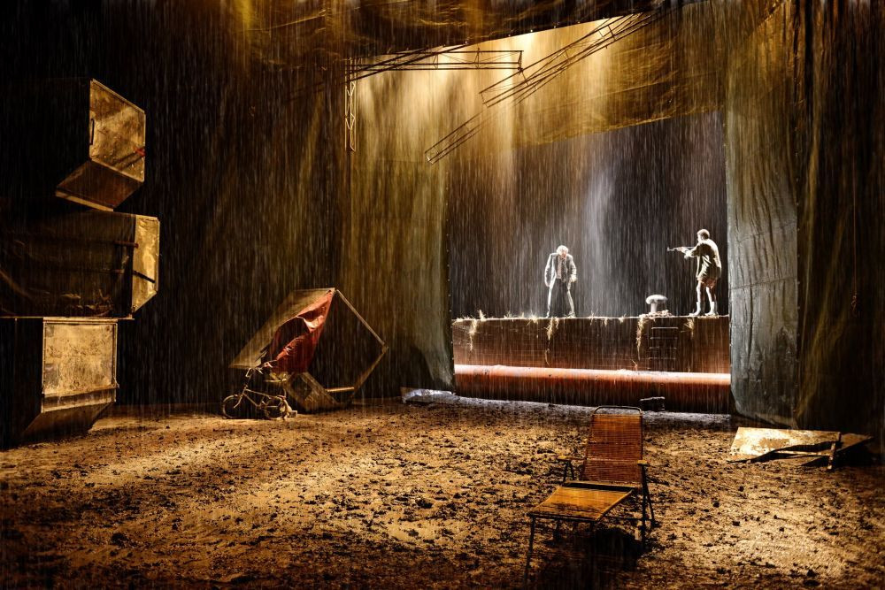 Očitno smo na obrobju mesta, na neuglednem kraju ob reki, na nabrežju zapuščenega pristana. Vse okrog ležijo neuporabni pristaniški stroji, naprave in zabojniki, ki kot ostanki pričajo o minuli gospodarski dejavnosti, hkrati pa utrjujejo vtis propadlosti in zavoženosti skorajda postapokaliptičnega mesta v zelo temni noči. Odrska scena Lorenza Bancija je prekrita z blatom, vendar prizorišče deluje premajhno za vse blato tega kraja, k turobni skrivnostnosti pa prispeva tudi skopa osvetlitev oziroma zatemnitev Roberta Innocentija.