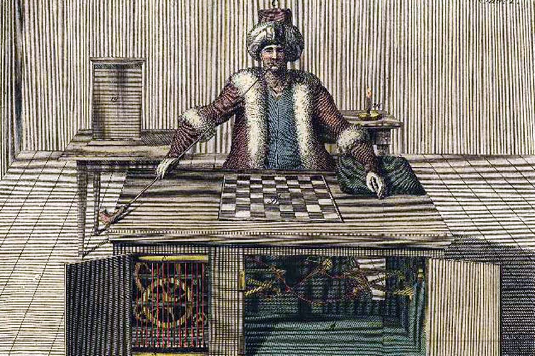 Leta 1769 je francoski iluzionist François Pelletier gostoval na habsburškem dvoru, v dunajski palači Schönbrunn. Med njegovo publiko je bil tudi avstroogrski dvorni uradnik in mehanik Wolfgang von Kempelen, ki si je po nastopu prisegel, da izumi nekaj, kar bo Marijo Terezijo očaralo še bolj od iluzionistovih magnetov. Približno pol leta pozneje je v isti palači predstavil svoj znameniti izum – šahovskega Turka. Turek je bil robotski igralec šaha, oblečen v otomansko haljo in turban. V eni roki je držal tradicionalno otomansko pipo, druga pa je počivala na omarici, ki je bila glavno čudo tega stroja. Kakorkoli so gledalci odpirali njena vratca in preverjali zapletena kolesja v notranjosti ali jo poskušali prelisičiti z magneti in nepravilnimi potezami figur, se čudežne robotske omarice ni dalo niti pretentati niti razvozlati, še najtežje pa je bilo sprejeti njeno premoč v partiji šaha.