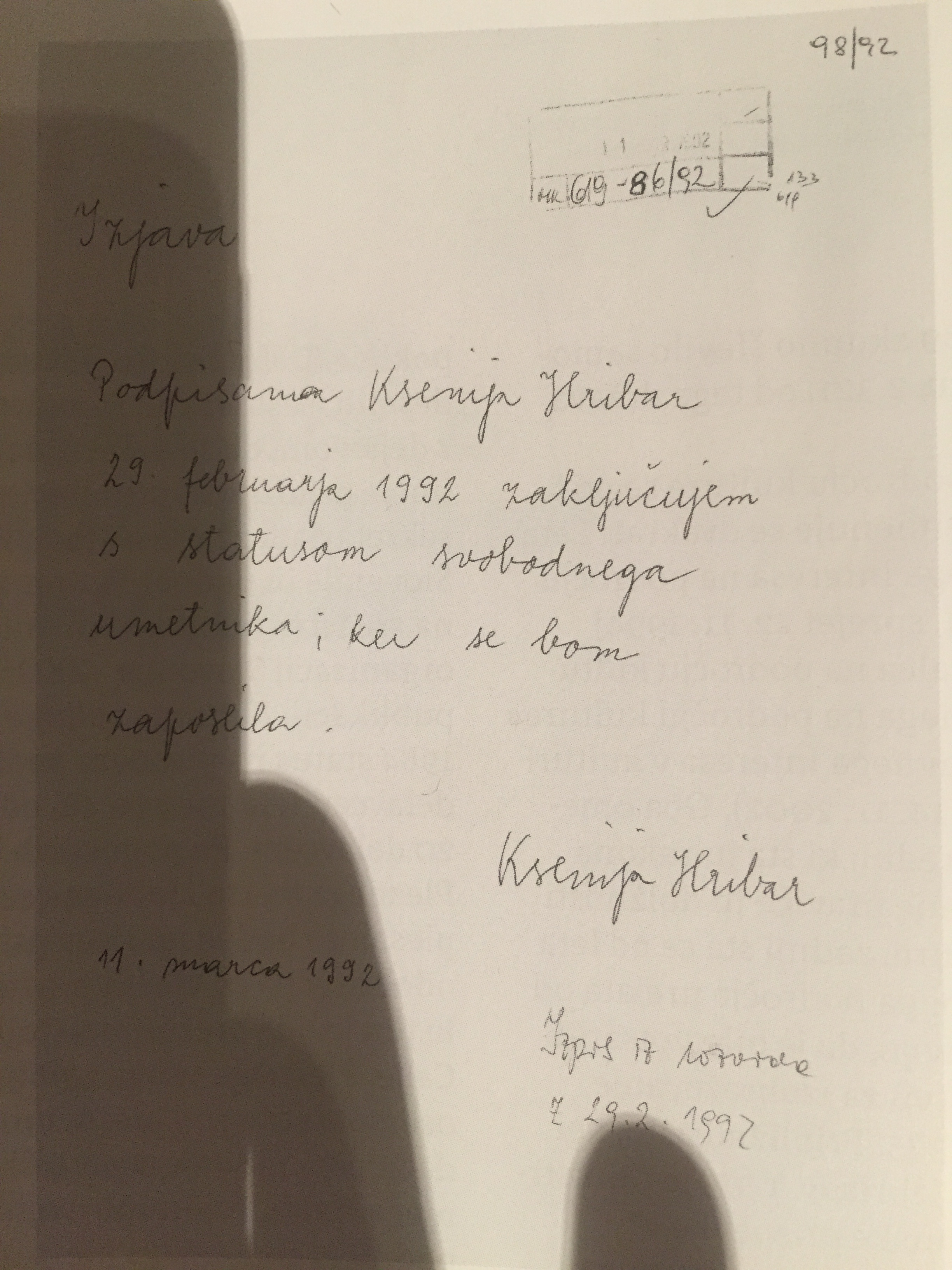 2. O njeni nomadski prekernosti, genealoško zvezani z današnjo domislico prekariata: leta 1963 je Ksenija Hribar dobila "status svobodne umetnice - plesalke in kasneje koreografinje", njeno honorarno delo pa je bilo odvisno od povabil za delo v vse obsežnejšem (zabavnem in glasbeno-baletnem) programu tedanje RTV Ljubljana (Televizija Ljubljana).