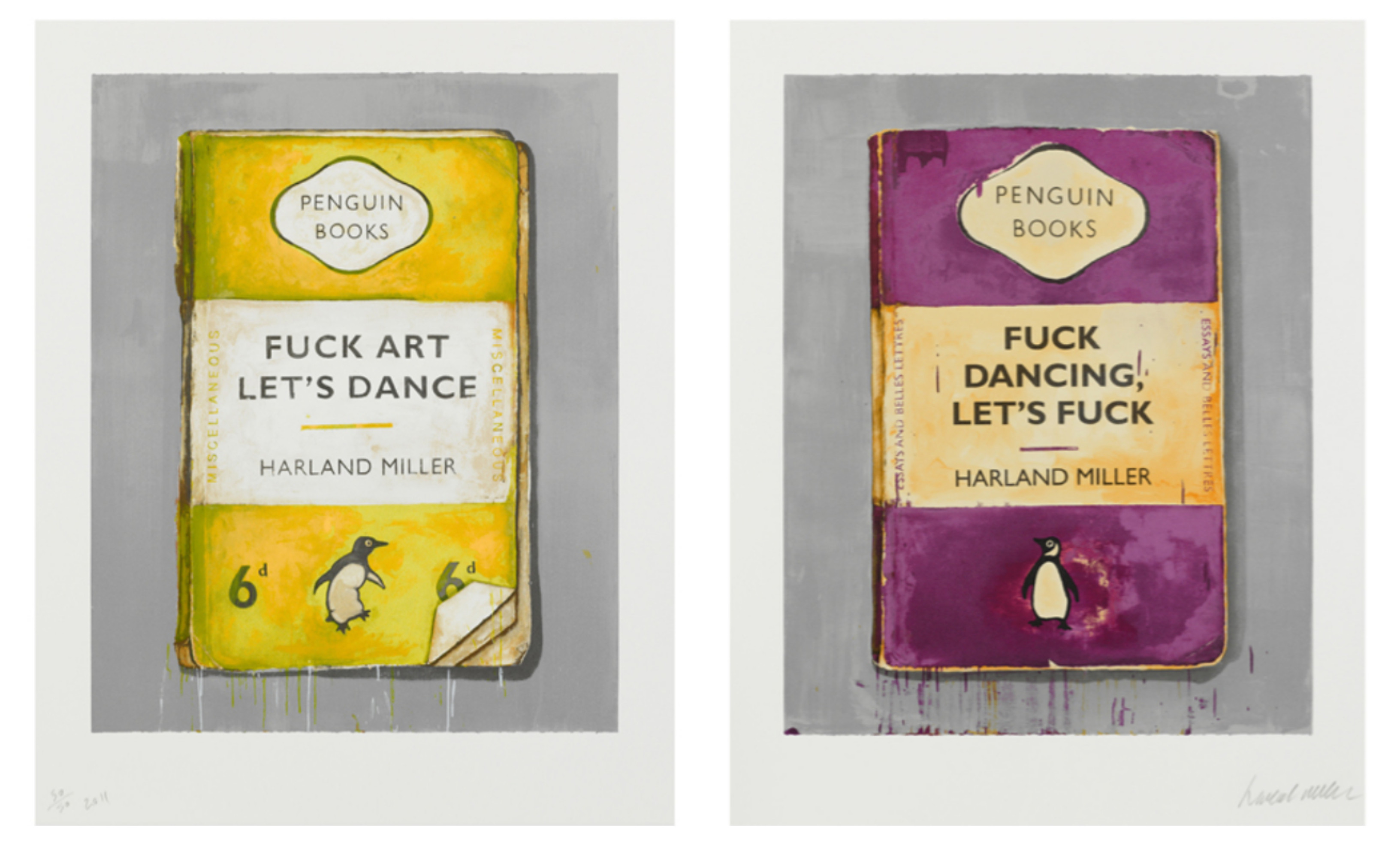 Slika: Harland Miller – Fuck Art Let's Dance & Fuck Dancing Let's Fuck, diptih, 2011