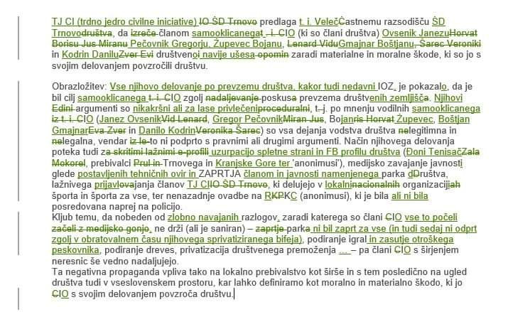 In kako je ta zbor izgledal? Vodstvo Športnega društva Trnovo se je pojavilo s kupom podpisanih pooblastil v roki, ki jih seveda niso dali v vpogled članom iniciative, in z njimi povozilo vse predloge opozicije ter svojim sklepom izglasovalo podporo. Treba je seveda opozoriti, da statut društva takšne prakse ne dopušča. Kar pa je pohvalno, je, da je samo vodstvo predlagalo in sprejelo sklep, da se pogodba o odstopu gradbene pravice njihovem podjetju Trnovček d.o.o. prekine.