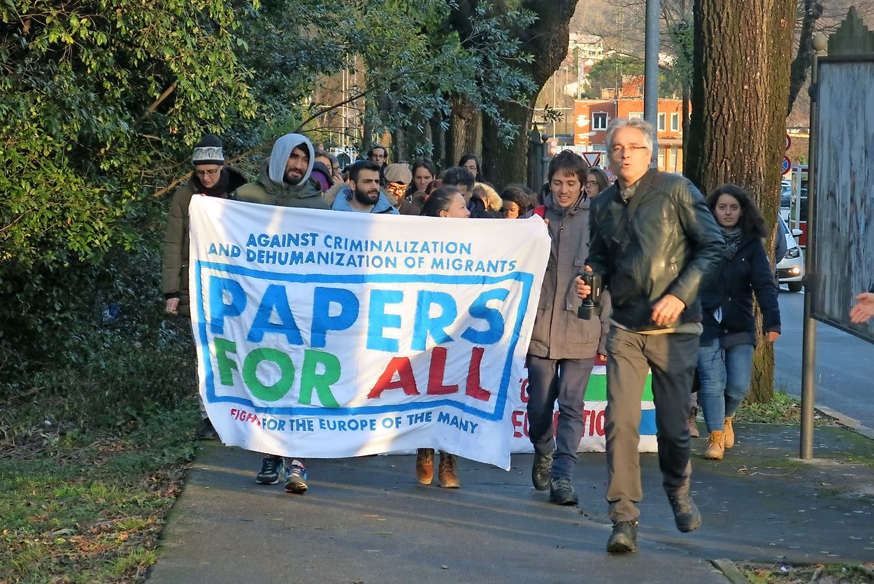 V Goricah na obeh straneh meje se je odvil protest "Restiamo Umani/Dobrodošla človečnost", ki je kritiziral ukrepe italijanske vlade in Evropske unije do migrantov. Protesta se je udeležilo približno 350 protestnikov iz Slovenije in Italije. Protest je sprožilo dogajanje v predoru Bomba v Gorici, kjer so do pred enim mesecem v človeku neprimernih razmerah živeli migranti. Predor so nato zaprli, vendar vseh migrantov niso preselili v nastanitvene centre. Del migrantov se je zato naselil na obrežja Soče. Na protestu so nevladniki tako poudarili, da je postavitev začasnega bivališča za migrante, v obliki šotora za 60 ljudi, sicer vsekakor boljša alternativa predoru, vendar pa je tudi ta šotor v goriškem parku že poln. Vsak dan v Gorico prispe tudi do 25 prosilcev za azil, nastavitveni centri pa so že polni.