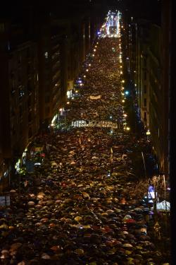 Več deset tisoč ljudi se je podalo na ulice baskovskega mesta Bilbao, kjer so zahtevali premestitev zapornikov, povezanih z baskovskim separatističnim gibanjem ETA v baskovske zapore. V španskih in francoskih zaporih naj bi bilo po podatkih voditeljev protesta približno 350 članov gibanja, od tega le dva v zaporih v Baskiji. Razpršitev zapornikov po državi naj bi služila omejitvi kontaktov med njimi. Po oceni baskovskega časnika Gara je pod slogani, kot so "baskovski zaporniki v baskovsko državo" korakalo približno 80 tisoč ljudi. Španske oblasti zatrjujejo, da ne bo nikakršne spremembe v politiki do zapornikov dokler se gibanje, ki je oboroženi upor opustilo leta 2011, dokončno ne razpusti.