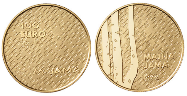 Na naslovni sliki sta upodobljeni obe strani zlatega zbirateljskega kovanca ob 150. obletnici rojstva slikarja Matije Jame.