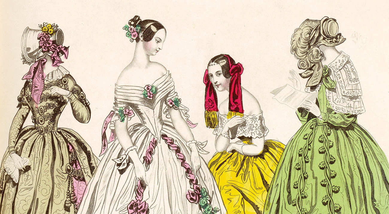Te »naravne« atribute so nato poudarili z oblikovanjem oblačil. Široke krinoline so poudarile v korzete stlačene ozke pasove, ženske, ki še niso imele »videza jetike«, pa so si pordečile ustnice in pobelile kožo.