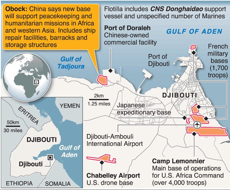 Prevlada geostrategije je pač zadnja stopnja pred prevlado popolne distopije. Ne pozabimo, v Džibutiju imajo svojo vojaško bazo Francozi, v njej pa so prisotne tudi španske in nemške sile, Američani, Japonci, Kitajci in celo Italijani. Manjkajo le še Rusi, ki jih je Džibuti že zavrnil in se dogovarjajo s sosednjo Eritrejo.