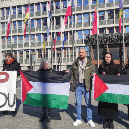 Protest proti genocidu pred Miniteatrom