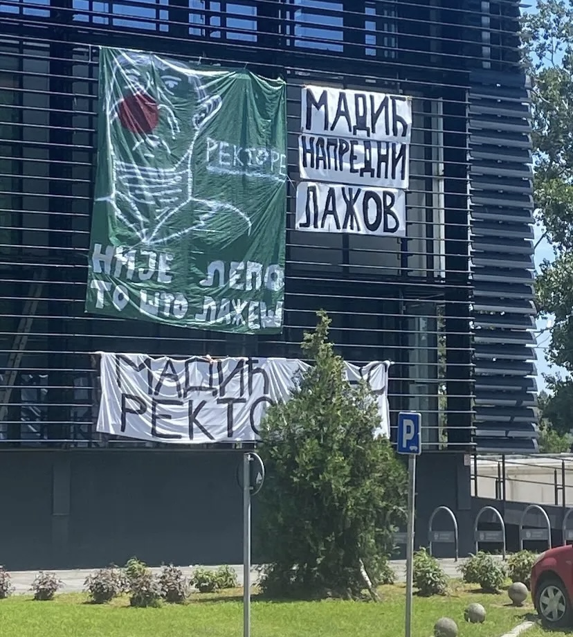 Študentska skupina Studenti protiv autoritarne vlasti že več kot deset dni zasedajo prostore rektorata na Univerzi v Novem Sadu, v katerih naj bi potekale volitve študentskega parlamenta Filozofske fakultete. Študentje nasprotujejo izvedbi volitev izven prostorov matične fakultete, v skladu s pravili morajo te potekati v stavbi fakultete. Zahtevajo tudispremembo pravilnika o volitvah študentskih predstavnikov, ki po njihovem mnenju ne omogoča enakopravne možnosti za kandidaturo, prijavijo se lahko namreč le registrirane študentske organizacije.