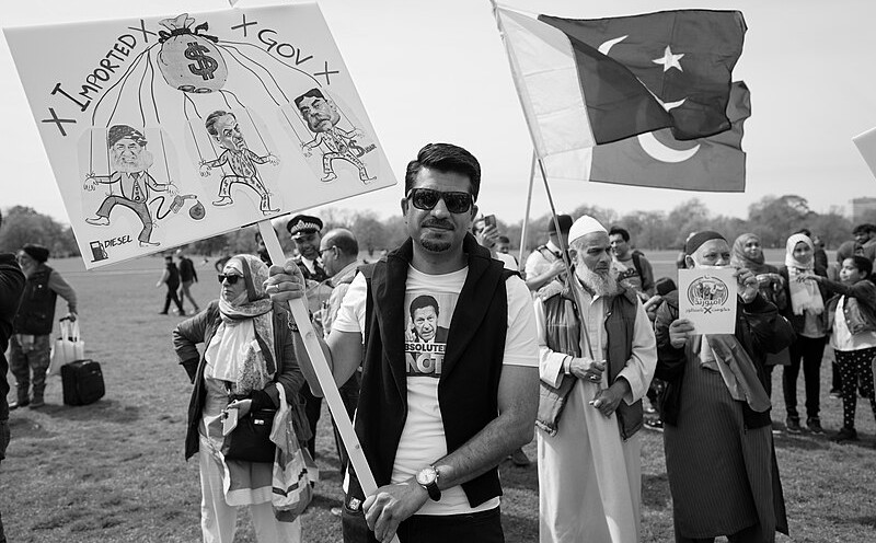 Vir fotografije: Alisdare Hickson: Standing against the US/dark money backed coup in Pakistan, Wikipedia All Creative Commons